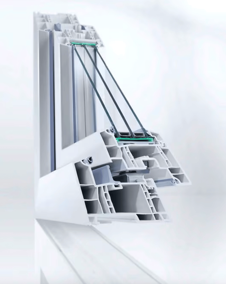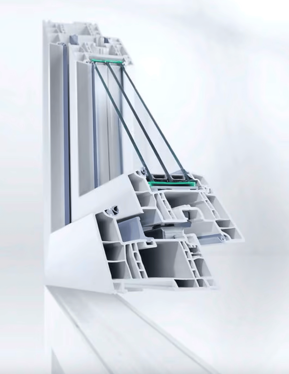La gamme GENEO de REHAU représente le summum de la performance en fenêtres PVC. Conçue à partir du matériau innovant RAU-FIPRO, elle offre une stabilité exceptionnelle sans renfort acier, permettant d’atteindre des niveaux d’isolation thermique et de performance mécanique parmi les plus élevés du marché
